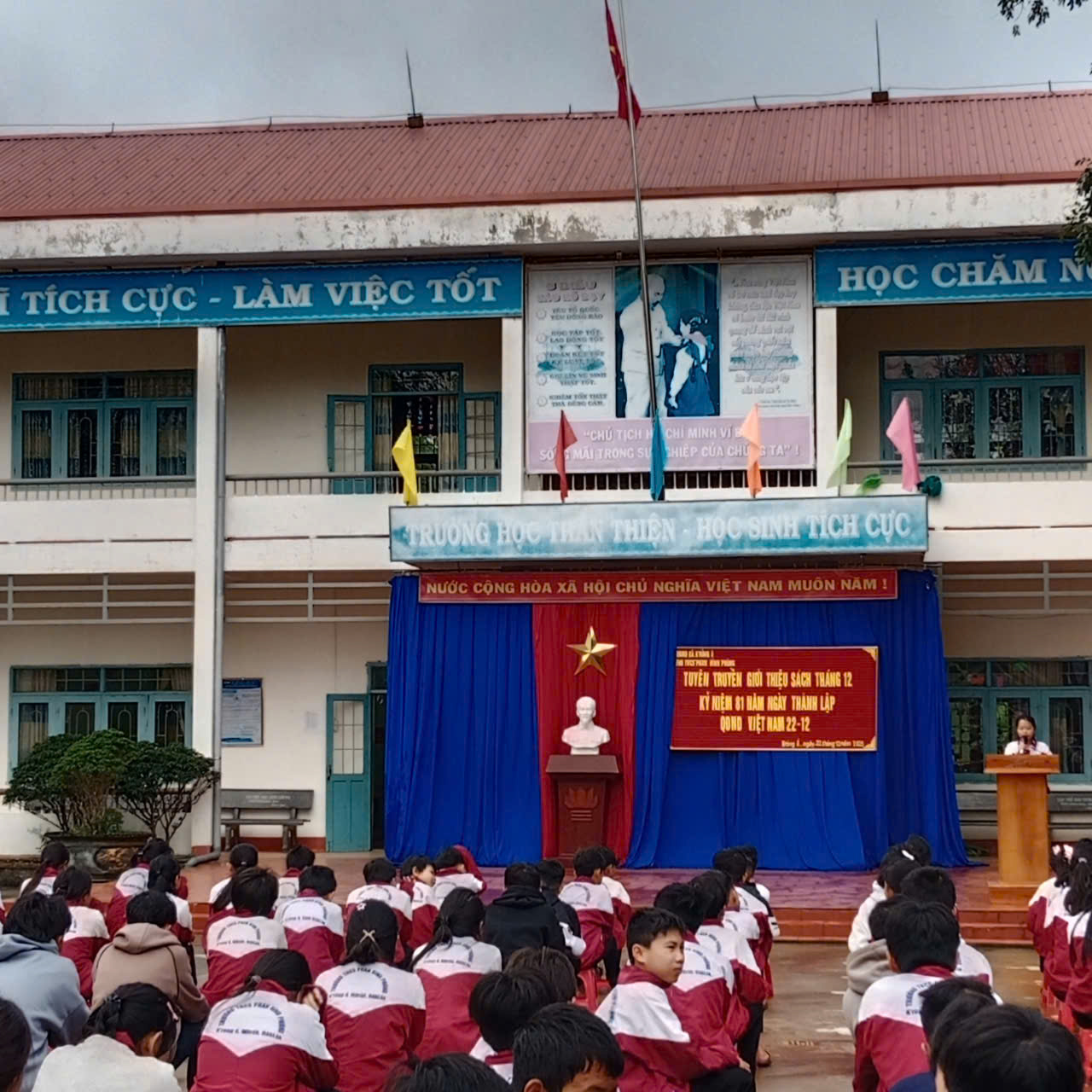 Đặc biệt, Liên đội nhà trường phối hợp với Thư viện đã tổ chức giới thiệu sách theo chủ đề tháng 12, nổi bật là cuốn sách“Người lính Điện Biên kể chuyện” – tác phẩm chân thực, giàu cảm xúc, giúp học sinh hiểu sâu sắc hơn về tinh thần chiến đấu kiên cường, sự hy sinh thầm lặng của những người lính năm xưa.