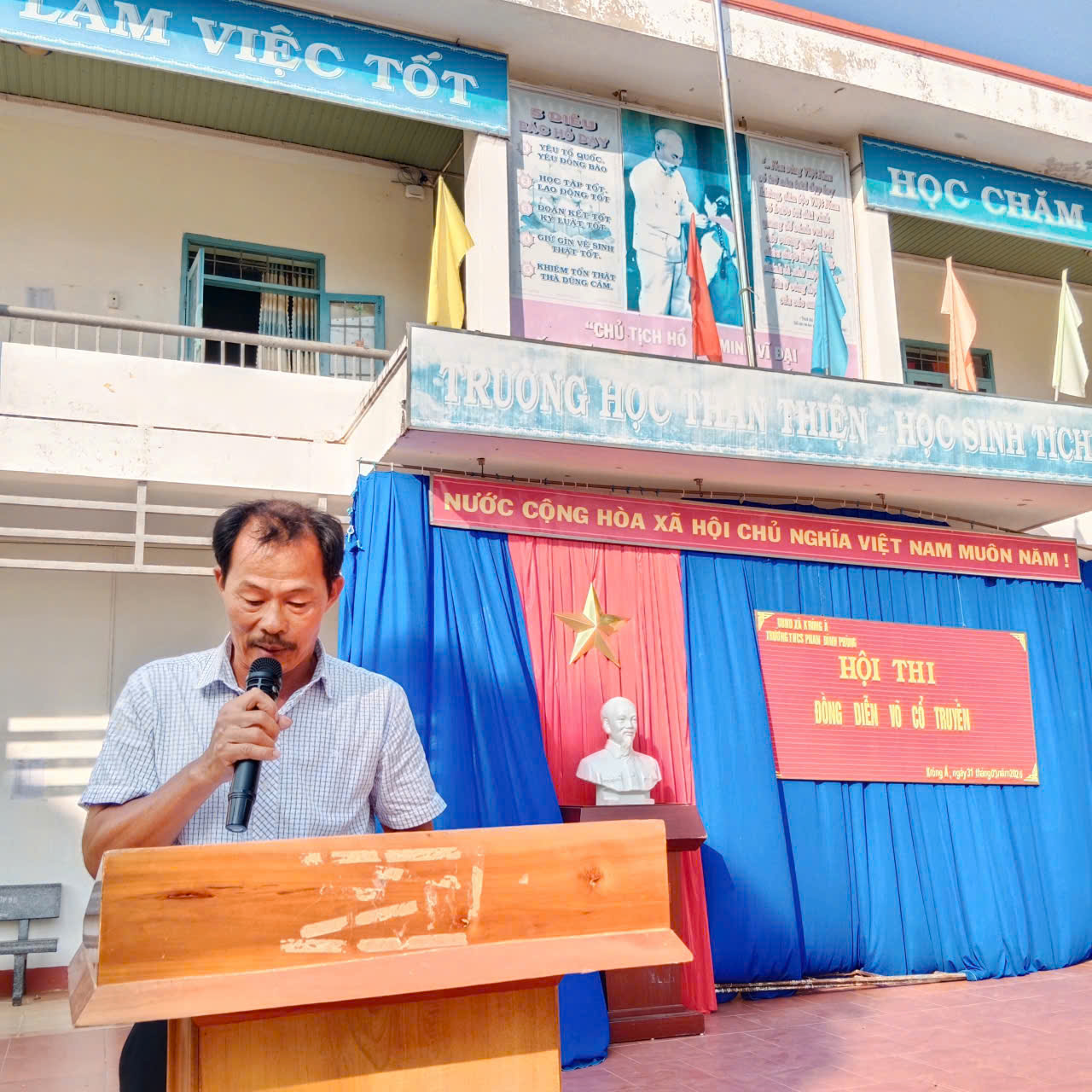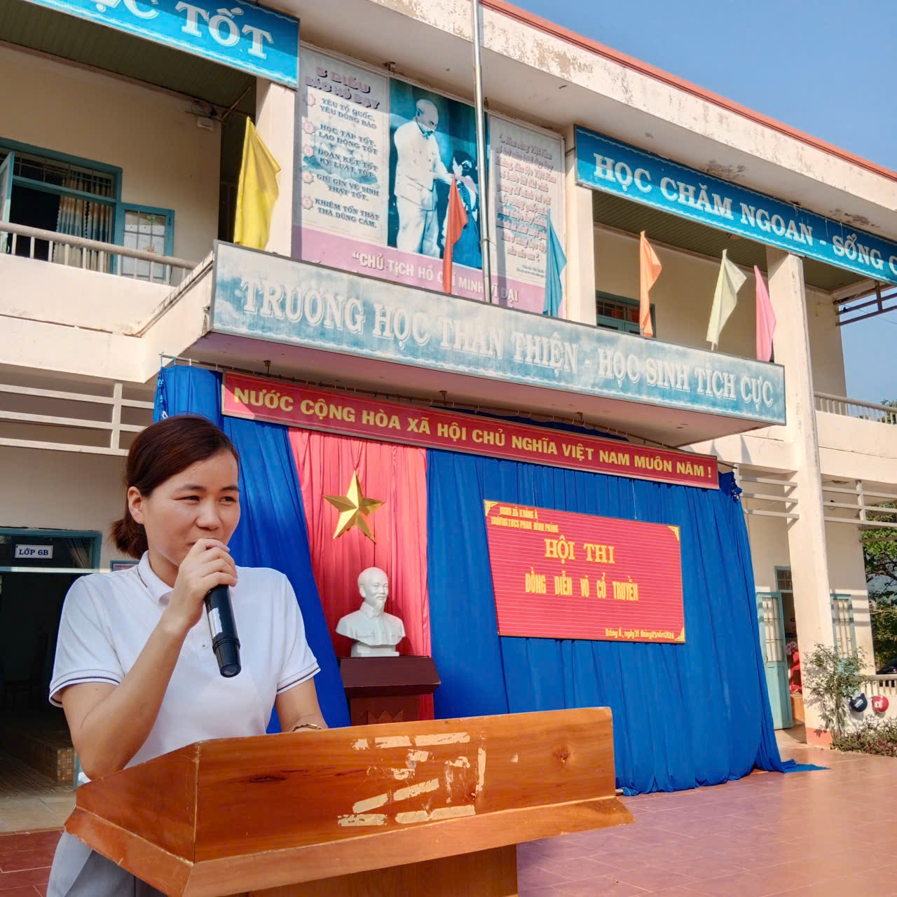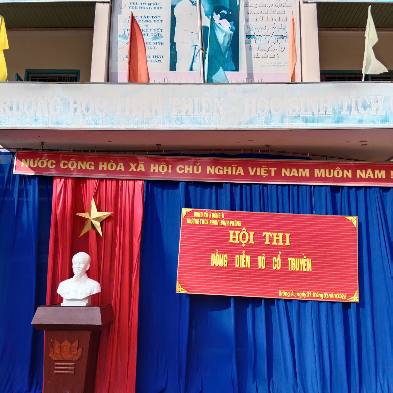 Chiều ngày 31/3/2026, Trường THCS Phan Đình Phùng đã tổ chức thành công Hội thi Đồng diễn Võ Cổ Truyền giữa các lớp. Đây là một hoạt động ý nghĩa nhằm phát huy tinh thần thể dục thể thao, giữ gìn và phát triển các giá trị văn hóa dân tộc, đồng thời nâng cao thể chất cho học sinh. Hội thi không chỉ là dịp để các em học sinh thể hiện kỹ năng võ thuật, mà còn là cơ hội để rèn luyện tính kỷ luật, đoàn kết, tinh thần đồng đội. Mỗi lớp tham gia đều có những màn biểu diễn ấn tượng, thể hiện sự nỗ lực và nhiệt huyết của các em.