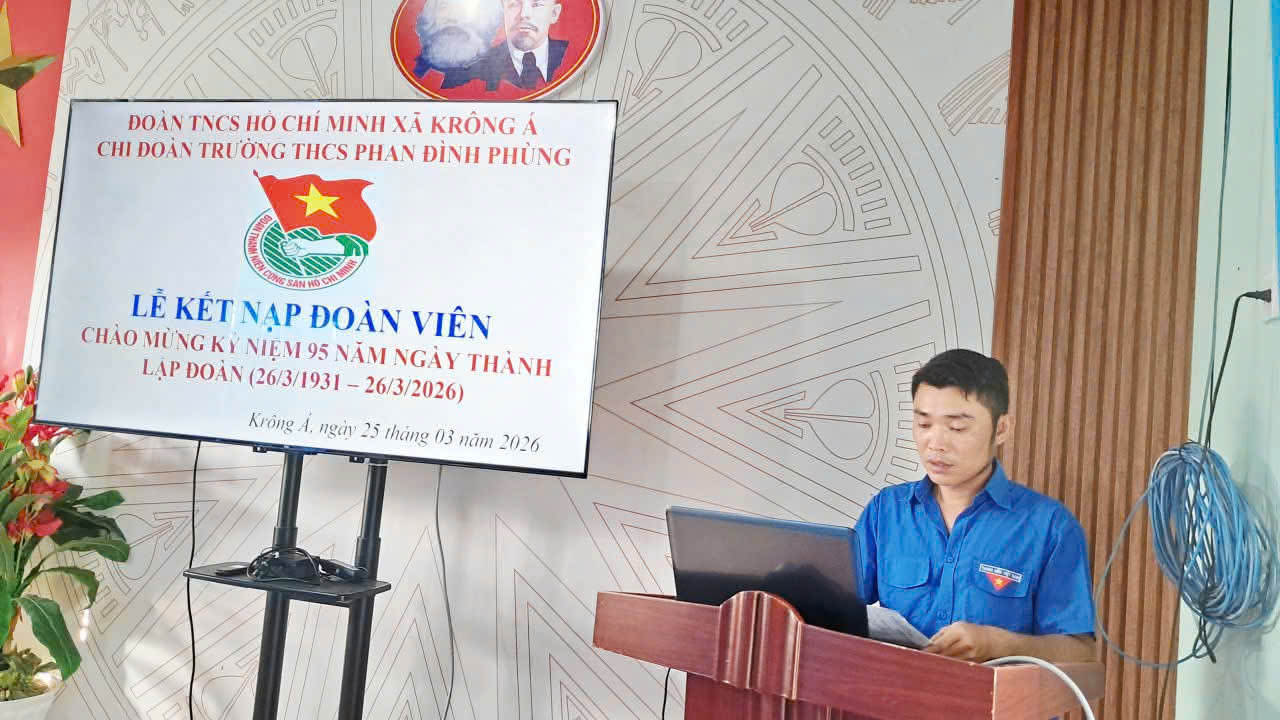Chiều thứ Tư, ngày 25/3/2026, trong không khí trang trọng và đầy ý nghĩa, được sự nhất trí của Đoàn Thanh niên xã Krông Á, Ban Chấp hành Đoàn trường đã long trọng tổ chức Lễ kết nạp Đoàn viên mới cho 30 học sinh ưu tú. Đây là những học sinh có phẩm chất đạo đức tốt, tích cực trong học tập và rèn luyện, xứng đáng được đứng vào hàng ngũ của Đoàn Thanh niên Cộng sản Hồ Chí Minh.