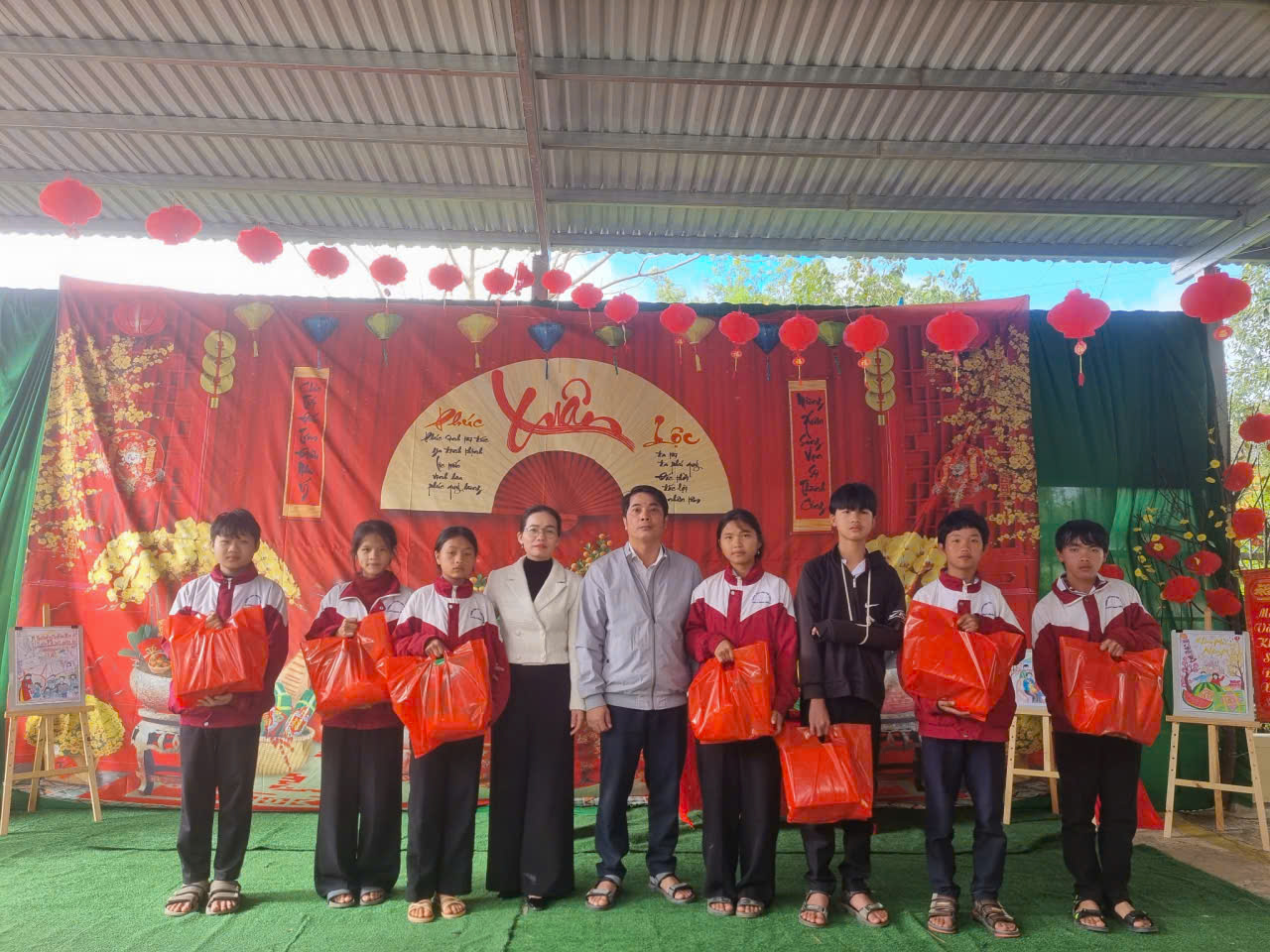 Bên cạnh những hoạt động ý nghĩa liên đội nhà trường còn tặng 30 suất quà tết cho các em học sinh nghèo vượt khó để có thêm một cái tết ấm no, hạnh phúc.