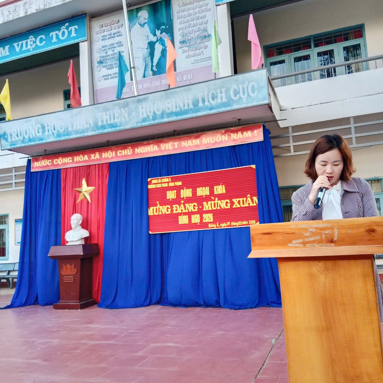 Sáng ngày 2/2/2026, Trường THCS Phan Đình Phùng đã tổ chức một hoạt động ngoài khóa đặc biệt mừng Đảng, mừng xuân. Các hoạt động văn hóa, thể thao diễn ra sôi nổi, với sự tham gia của đông đảo học sinh và giáo viên. Đây là cơ hội để các em bày tỏ lòng kính trọng đối với Đảng, với những thành tựu mà dân tộc ta đã đạt được, đồng thời thể hiện tinh thần đoàn kết, sáng tạo trong học tập và rèn luyện.