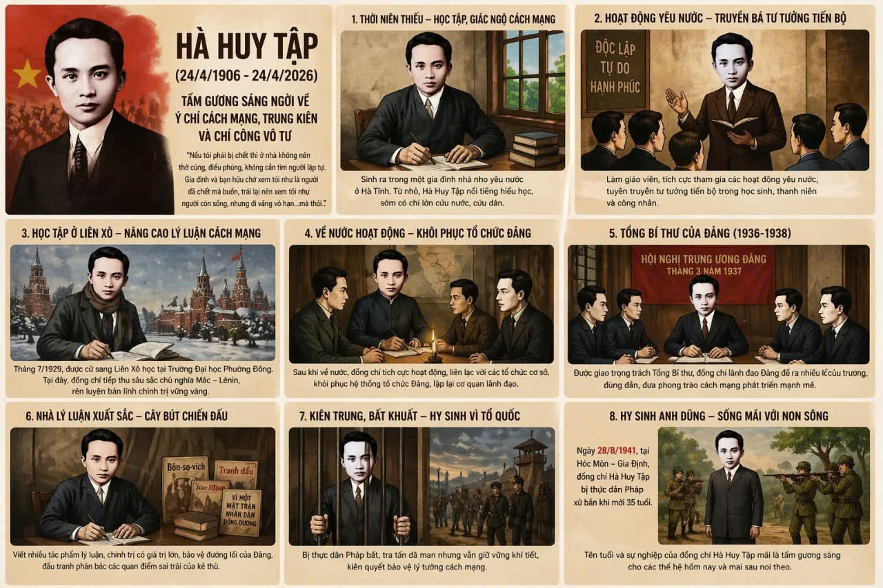 Nhân dịp kỷ niệm 120 năm Ngày sinh đồng chí Hà Huy Tập (24/4/1906 – 24/4/2026), chúng ta cùng ôn lại một cách ngắn gọn nhưng đầy đủ về cuộc đời, sự nghiệp và những đóng góp to lớn của đồng chí đối với Đảng và dân tộc Việt Nam.