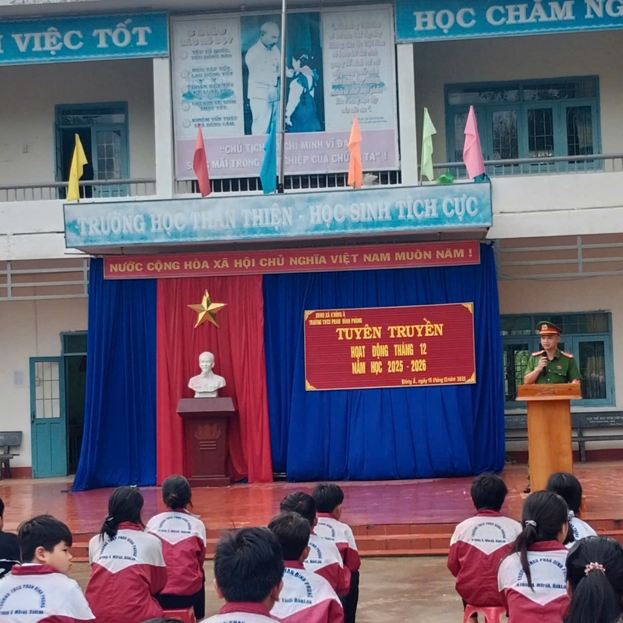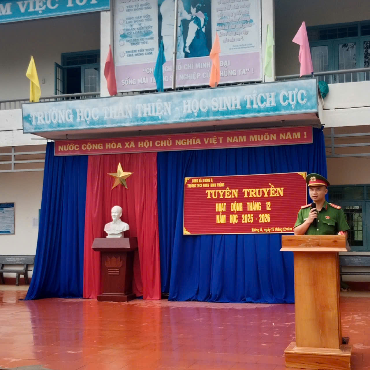Sáng ngày 15/12/2025, Trường THCS Phan Đình Phùng đã phối hợp với Công an xã và Đoàn Thanh niên xã tổ chức buổi tuyên truyền, giáo dục pháp luật về phòng, chống tảo hôn và an toàn giao thông trong trường học.